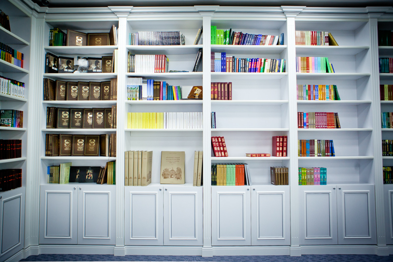 Незважаючи на те, що книг тут поки що мало, вони привертають увагу. Тут і Азербайджанська національна енциклопедія, і Коран на різних мовах і в різних виданнях, серія світової та азербайджанської класичної і сучасної літератури на азербайджанською мовою, виданої на підставі розпоряджень президента Азербайджанської Республіки за десятирічний період з 2004 - 2014 років на латинській графіці, 36 томів, присвячених образотворчому мистецтву Азербайджану, серія «Музеї світу», серія «Лауреати Нобелівської премії», книги, присвячені архітектурі Баку, Абшерона, Азербайджану, видані в 2013-му році на трьох мовах, рідкісна серія «Класики науки" 1955-го і 1995 го років, два повних зборів енциклопедичних словників Брокгауза і Ефрона (енциклопедія, видана в Російській імперії в 1890-1907 роках), Серія «Узеир Гаджибеков» з повним клавіром і партитурами і багато іншого.